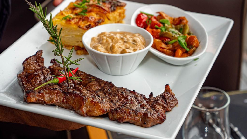Accompagnées de légumes du chef et frites maison ou pommes de terre au four ou gratin dauphinois.